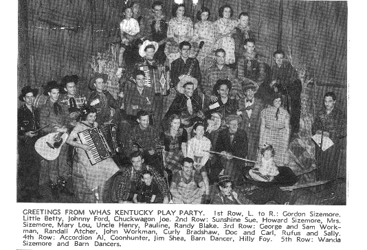Doc and I were transferred to WHAS, Louisville, Kentucky, in February 1939. On WHAS, we were on the early “Morning Jamboree” program from 6:30 a. m. to 7:30 a. m. along with a group of other musicians, namely, Uncle Henry’s Kentucky Mountaineers, Sally and the Coonhunter, Sunshine Sue and her Rock Creek Rangers, Gordon Sizemore and Little Betty, Joe and Al, The Chuckwagon Boys, and Pat McAdary.